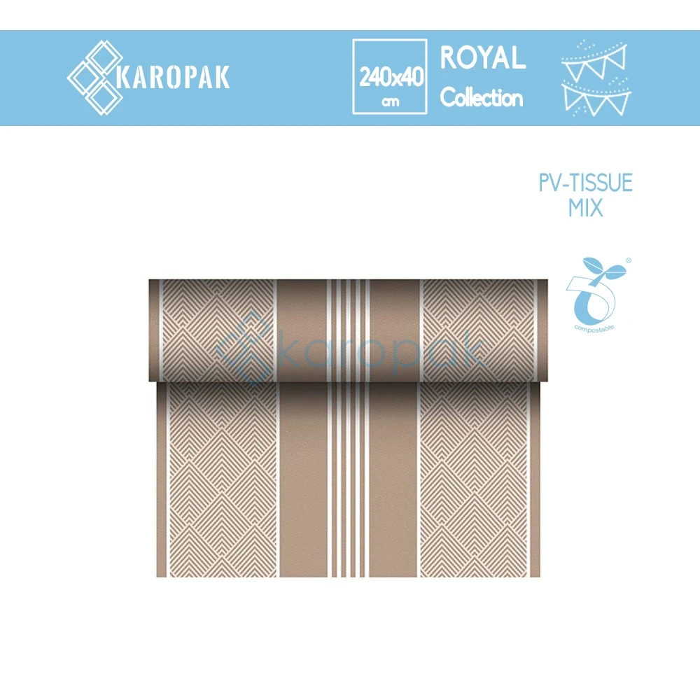 Odkryj bieżnik z PV - Tissue Mix, który wygląda jak elegancka tkanina, a jednocześnie zachowuje wygodę materiału jednorazowego. Model RC 24 m / 40 cm w kolorze brąz „Elegance” podkreśla klasę stołu w domu, restauracji czy podczas cateringu. Delikatna faktura, subtelny półmat i głęboki odcień brązu harmonizują z drewnem, porcelaną i szkłem, tworząc spójne, ciepłe aranżacje.