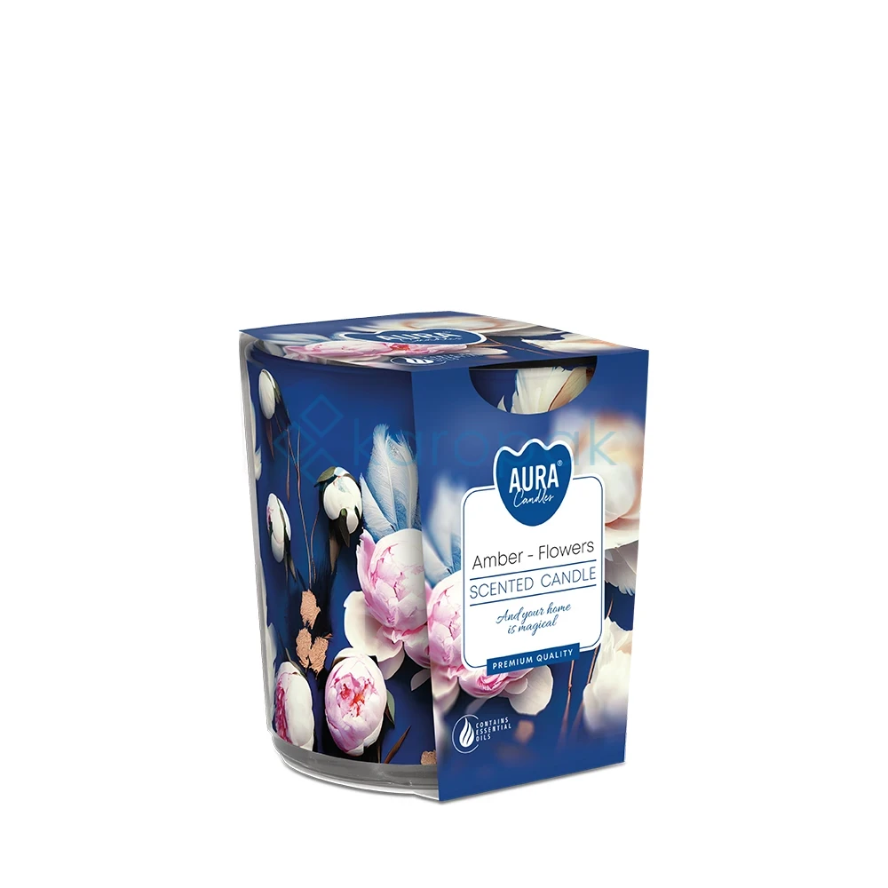 Świeca zapachowa BISPOL "BURSZTYN-KWIATY" w eleganckim szkle to połączenie wyjątkowego aromatu i stylowej dekoracji wnętrza. Zapach bursztynu połączony z delikatnymi kwiatowymi nutami wprowadza przyjemny, ciepły klimat, tworząc atmosferę relaksu i elegancji w każdym pomieszczeniu.